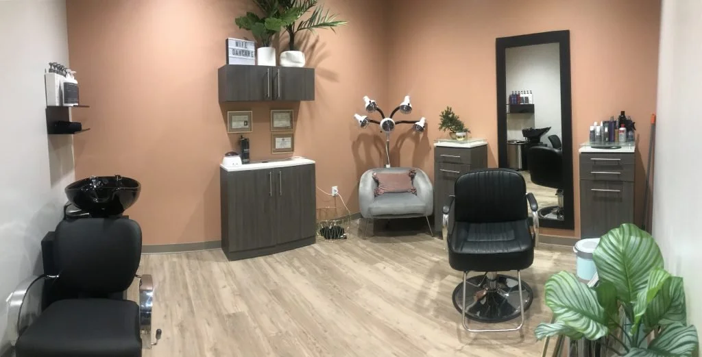 Perfect for serious professionals and beauty teams, our deluxe suites are sure to bring your business to new heights. Complete with two workstations including cabinet space, storage, and a full back bar unit with hot/cold sink for the ultimate luxurious experience.
